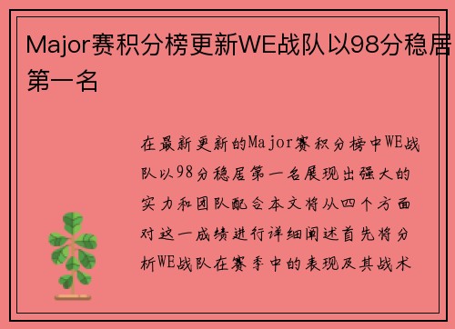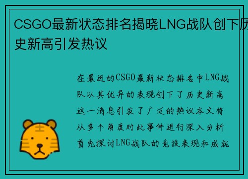 在当今电子竞技的浪潮中,《反恐精英:全球攻势》(CS:GO)已成为最受欢迎的游戏之一,其中各大战队的表现备受关注。本文将对WE战队在CSGO赛事中的游戏节奏与战术布局进行深入分析。通过对其比赛风格、团队合作、关键局面应对以及适应能力等四个方面的探讨,我们将揭示WE战队如何在激烈的竞技环境中立于不败之...